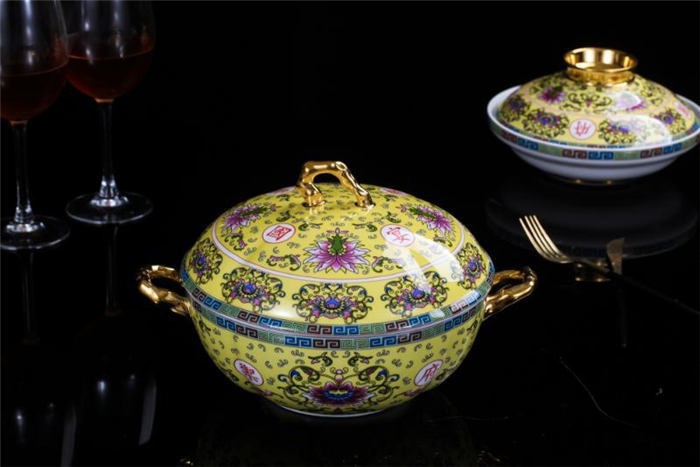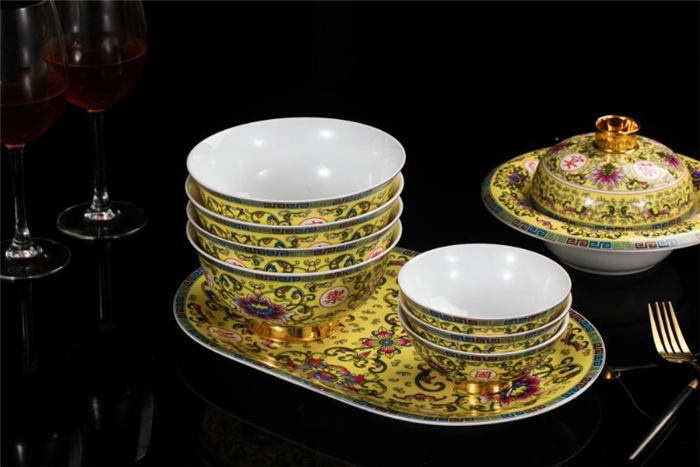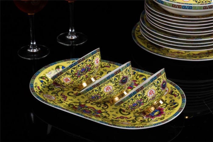 十個(gè)碗,7寸骨盤十塊,盤子十塊,小勺十個(gè),筷子架十個(gè),面碗四個(gè),魚(yú)盤一個(gè),大圓盤一塊,湯煲一個(gè),合和器2套四塊,燉盅2套四個(gè),果盤1套二個(gè),大飯勺一個(gè)。